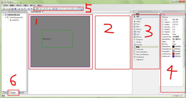 1為皮膚設計窗口,在上面添加控件規(guī)劃你的皮膚。