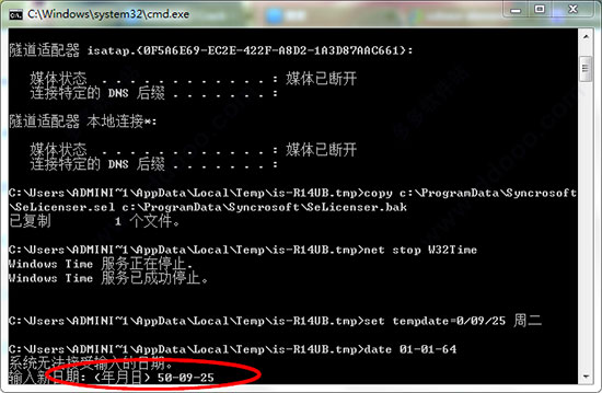 5、運(yùn)行Steinberg Content Elicense.exe,需要輸入2次日期,前一個(gè)日期輸入2040-09-25,敲擊回車(chē)鍵,后一個(gè)輸入日期是當(dāng)前安裝時(shí)間日期!安裝中會(huì)出現(xiàn)斷網(wǎng),安裝完成后網(wǎng)絡(luò)會(huì)自動(dòng)修正電腦系統(tǒng)日期。