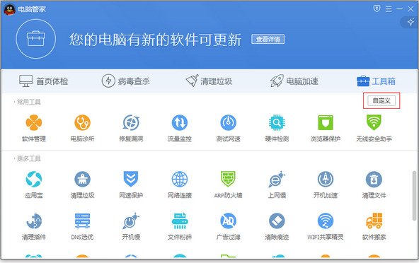 騰訊電腦管家工具箱支持小工具自定義,常用功能一觸即達(dá);