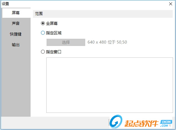 2 選擇“指定區(qū)域”,單擊“選擇”按鈕,可以手動(dòng)選擇要錄制的屏幕區(qū)域。