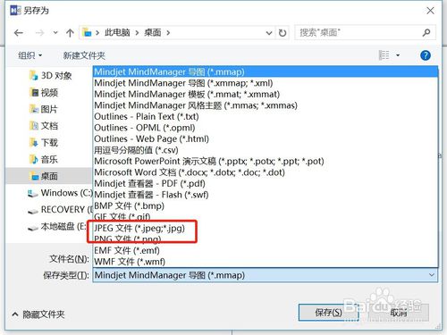 2、在彈出的對(duì)話框中,選擇保存格式(圖片格式),如下圖。