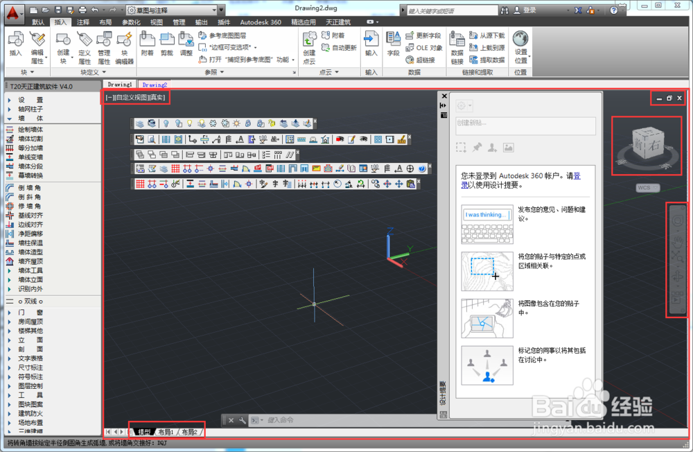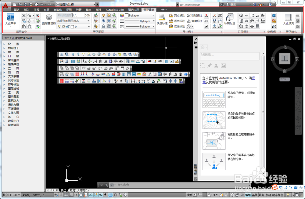1.AutoCAD軟件功能區(qū)位于天正操作界面最上方,使用方法與AutoCAD2014軟件相同。