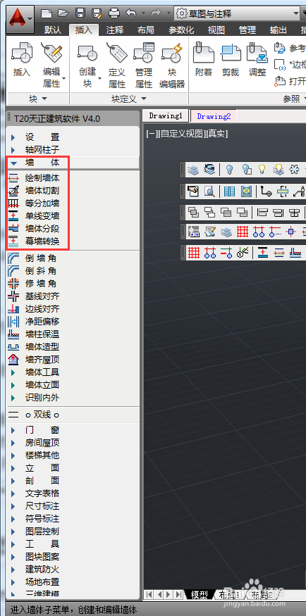 3.天正工具欄位于界面左側(cè),單擊工具欄中的選項(xiàng),在擴(kuò)展列表中會顯示相應(yīng)的操作命令,單擊命令可進(jìn)行相應(yīng)的操作。