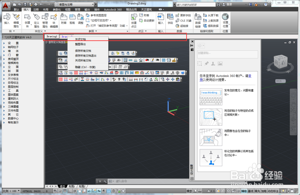 4、天正建筑2014下載版支持一套工程平面圖紙保存在一個DWG中,可與其他獨(dú)立圖紙DWG文件組合,生成立剖面與三維建筑模型