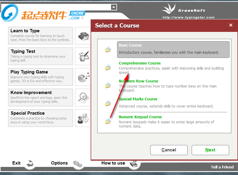 6、課程選項(xiàng):請(qǐng)指定您希望在課程中練習(xí)多少文本,以及在一個(gè)屏幕上顯示多長(zhǎng)時(shí)間的文本。 較短的文本將花費(fèi)更少的時(shí)間來(lái)完成