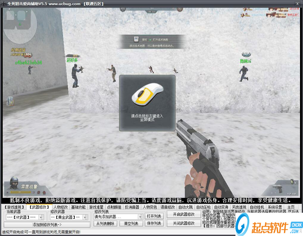 生死狙擊愛尚輔助功能強大,包括了自動大跳、游戲準星、點射瞬狙、自動壓槍、自動變身、反消音器、人物修改、語音修改、墻壁透視、武器修改等等。