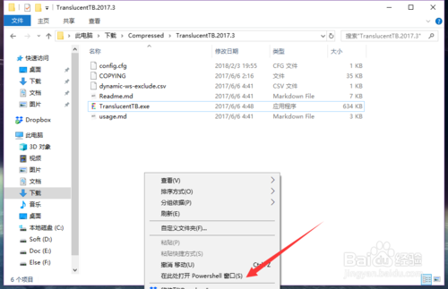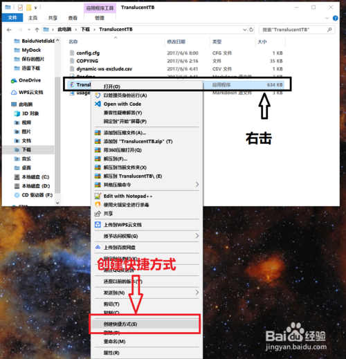 2.右擊“TranslucentTB.exe”,選擇“創(chuàng)建快捷方式”
