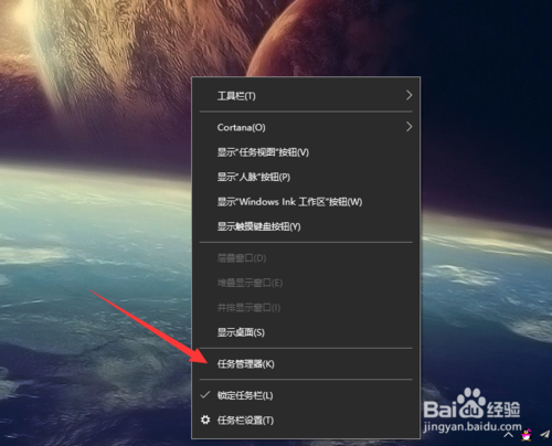 接下來,我們對(duì)著Win10系統(tǒng)的任務(wù)欄擊右鍵,在彈出的菜單中選擇打開任務(wù)管理器選項(xiàng),打開任務(wù)管理器頁面。