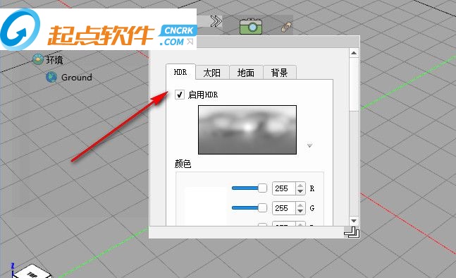 2、對環(huán)境編輯,可以選擇HDR渲染,可以設(shè)置太陽,可以設(shè)置地面,開始一個(gè)設(shè)置背景