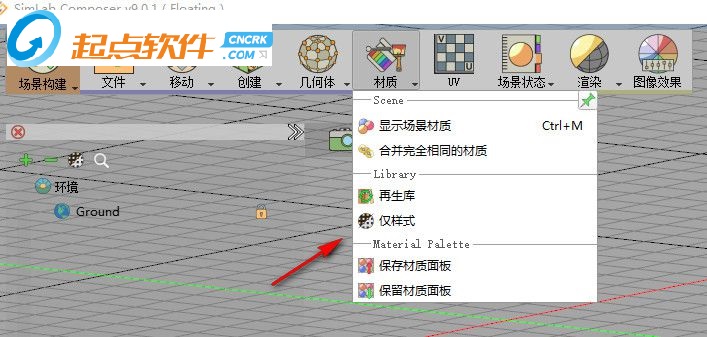 10、顯示場景材質(zhì)、合并完全相同的材質(zhì)、 Library、再生庫、僅樣式、 Material Pallette、保存材質(zhì)面板