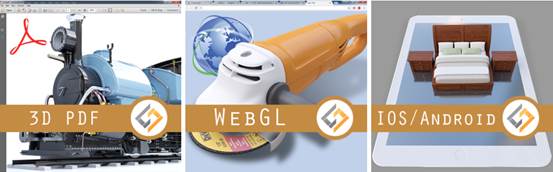 SimLab Composer為用戶提供了不同的共享3D場景和模型選項(xiàng)。3D PDF,WebGL,Android / iPad。