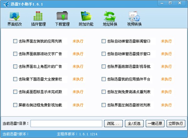 3、如果當(dāng)前迅雷有使用過迅雷7去廣告補(bǔ)丁,那請(qǐng)使用迅雷7去廣告補(bǔ)丁還原一次再使用迅雷7小助手軟件,建議卸載掉迅雷再重新安裝迅雷官方最新版的迅雷,再使用迅雷7小助手軟件!切記!