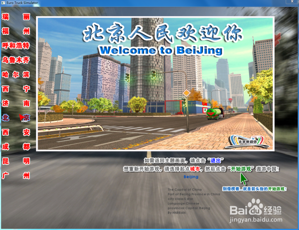 這里很關(guān)鍵,首先是選擇你要跑的城市。這時候你找到開始游戲的按鍵了嗎?看右下部分字體提示!點開始游戲那四個字就可以了!