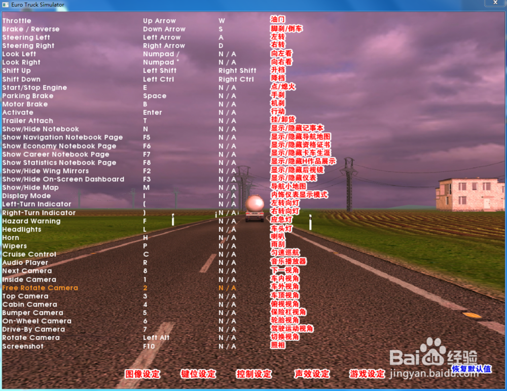 選擇城市如濟南,點開始,用← →選卡車價格,錢數(shù)必須低于手中現(xiàn)有錢數(shù),開車右拐,按M鍵,1次為右反光鏡,2次或3次為衛(wèi)星導航圖,注意地圖上有中國電信(福州為中國石油、瑞麗為伊利)字樣的地方,左拐,進去,↓處按enter鍵,選擇送貨地點,貨物,如上海,在集裝箱處卡車后背對集裝箱,按T裝貨,貨物拉到上海在地圖找ups地,↓處按T卸貨,卸貨位置要對準,加油站加油,必須按E鍵熄火,按enter鍵,加油。在zzz處,也必須按E鍵熄火,按enter鍵休息,睡覺。在扳手處可修車。M鍵可看導航地圖,按+放大地圖,按-縮小地圖,導航圖有加油站標記,M鍵可看資格證書和緊急求援,N鍵衛(wèi)星定位系統(tǒng)有始發(fā)站(可選擇貨車車型)裝貨,卸貨,加油站等標記。其他問題在游戲設(shè)置中尋找。