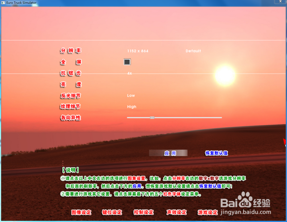首先咱們看一下游戲的設(shè)置部分。這個游戲的窗口設(shè)置不太好,不容易分辨。這里我們能看到分辨率還有窗口,窗口設(shè)置是第二個。還有一些反光設(shè)置看個人需求。