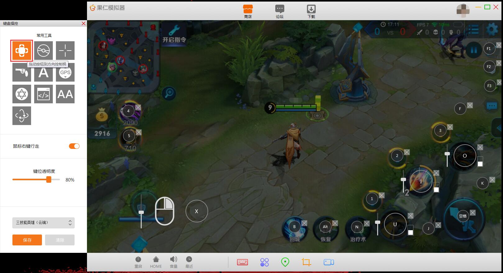 果仁模擬器怎么設(shè)置游戲按鍵?目前模擬器在《王者榮耀》中采用的默認(rèn)移動模式是鼠標(biāo)右鍵點擊移動,那如果各位小伙伴更習(xí)慣鍵盤W/S/A/D來控制方向也是沒問題的。