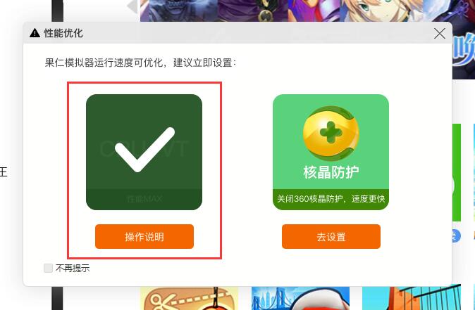 果仁模擬器特別卡?果仁模擬器果玩游戲時(shí)卡頓、閃退如何解決?一、關(guān)閉360核晶防護(hù) (退了360沒(méi)用的,一定要關(guān)了核晶防護(hù)設(shè)置。沒(méi)裝360可跳過(guò)此步驟)