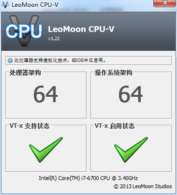 軟件界面如下,能查看CPU是否支持VT及是否已經(jīng)開(kāi)啟。