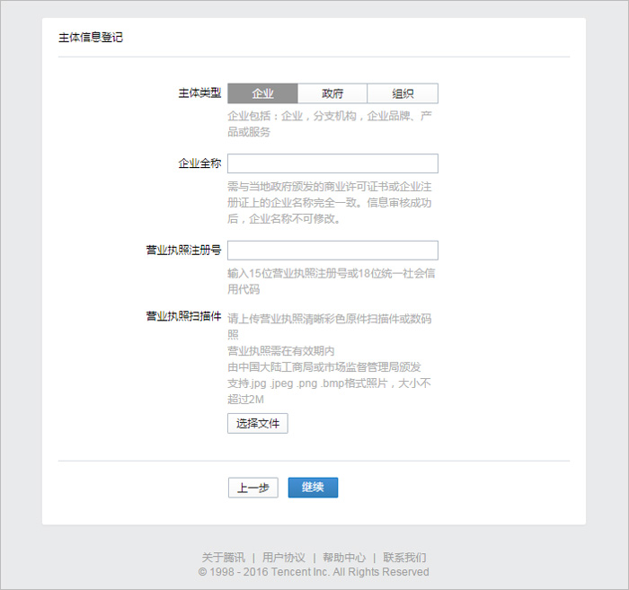 注:若主體信息審核不通過,需重新提交主體信息,重新審核。