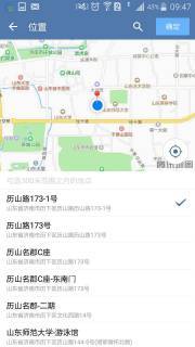 3,回到打卡界面,上方是定位,點(diǎn)開后可以選擇300米范圍之內(nèi)的地點(diǎn),選擇目前所在的最準(zhǔn)確的位置,點(diǎn)擊右上方“確定”;再點(diǎn)擊中間圓圈實(shí)時(shí)打卡,被匯報(bào)的同事能夠馬上收到打卡信息。
