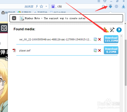 3、然后我們點擊瀏覽器右上角的該插件圖標(biāo),就可以看到有該視頻的下載資源了,我們點擊下載即可