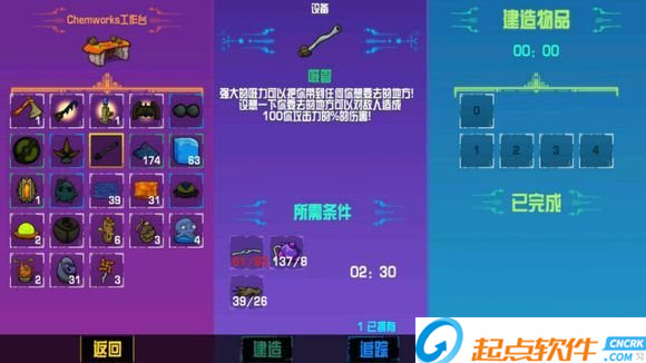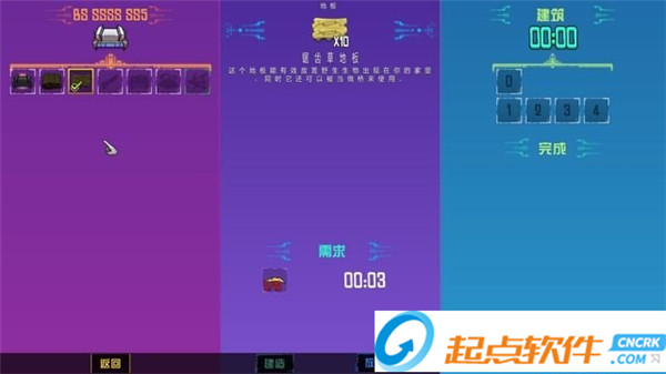 工具臺界面圖,點擊地板,可以看到原料需求以及建造時間。