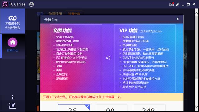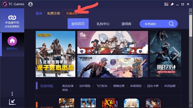 4、tcgames的“快速投屏”只有會(huì)員可以使用,所以需要“開通會(huì)員”,如圖: