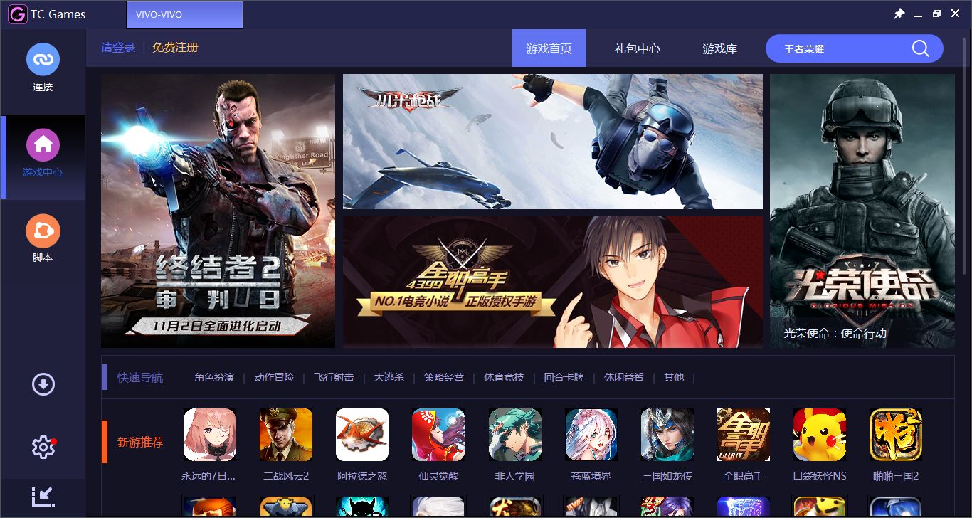 tc games是一款非常實(shí)用的電腦投屏軟件,可以幫助用戶將手機(jī)屏幕輕松投射到電腦上,便于用戶進(jìn)行玩游戲、運(yùn)行軟件、瀏覽信息等操作。tc games電腦版不僅支持錄制、截屏、屏幕移動(dòng)、腳本編輯等功能,而且畫質(zhì)也是十分的清晰,為廣大用戶帶來(lái)更加舒適流暢的游戲體驗(yàn)。tc games無(wú)需繁瑣的操作步驟,只需通過(guò)數(shù)據(jù)線或WIFI網(wǎng)絡(luò)等方式將手機(jī)與電腦進(jìn)行連接,即可快速將手機(jī)屏幕投射到電腦,無(wú)論你是配合直播還是玩游戲的時(shí)候使用,該軟件都是你首選的一款投屏神器。