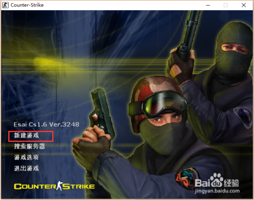 打開(kāi)cs1.6,進(jìn)入游戲后,點(diǎn)擊新建游戲,點(diǎn)擊開(kāi)始,這里地圖以隨機(jī)地圖為例