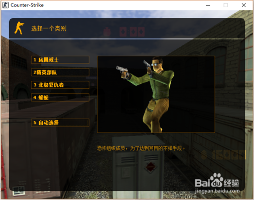 等待載入游戲,點(diǎn)擊確定,選擇隊(duì)伍,可以選反恐精英或者恐怖份子,也設(shè)為自動(dòng)分配,再選擇自己的一個(gè)角色類(lèi)型