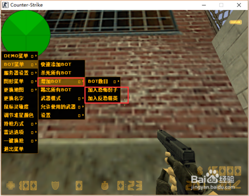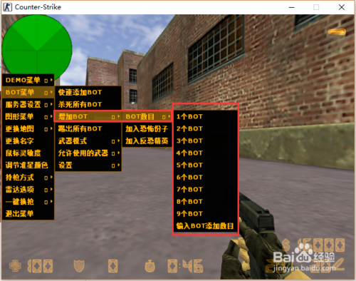 在選擇增加BOT,可以自行單獨(dú)增加反恐精英或者恐怖份子,也可以直接設(shè)置增加BOT的數(shù)量,等電腦自行分配