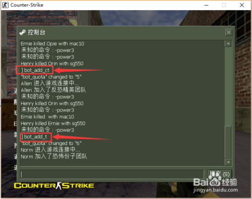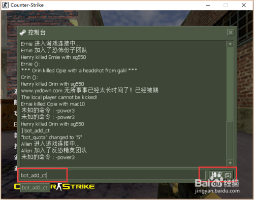 在控制臺(tái)的地址輸入框中輸入bot_add_ct可以添加反恐精英,輸入bot_add_t,可以添加恐怖分子,點(diǎn)擊提交即可