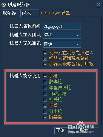 在“CPU PLayer”選項(xiàng)下主要是設(shè)置機(jī)器人拿的武器