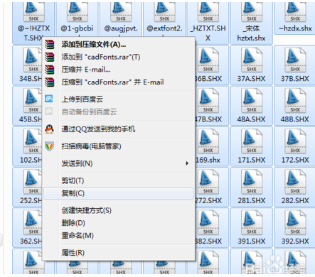 1、從起點(diǎn)軟件園下載好的CAD字體庫大全壓縮包,將壓縮包直接解壓得到其中的字體文件。注:解壓壓縮包需要使用壓縮解壓工具,推薦使用WinRAR,技術(shù)成熟可靠。WinRAR下載地址:http://www.onlinedown.net/soft/5.htm