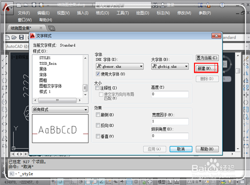 彈出“文字樣式”對話框,點(diǎn)擊“新建”,新建一個文字樣式,當(dāng)然,也可以使用原來的文字樣式,由于默認(rèn)的文字樣式組合較少,可能不是很適合,新建一個是較好的選擇。