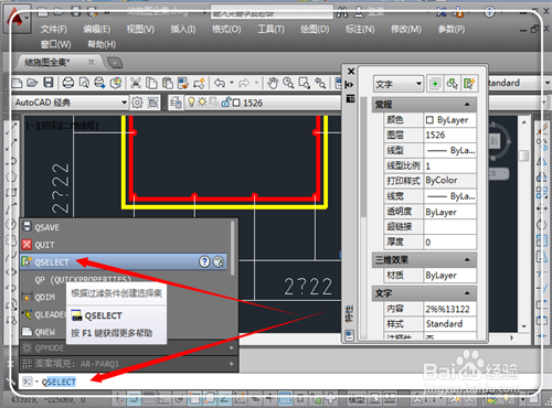 在命令欄輸入“q”,選擇“qslect”,點(diǎn)擊回車,當(dāng)然也可以從“工具”-“快速選擇”中調(diào)出來。