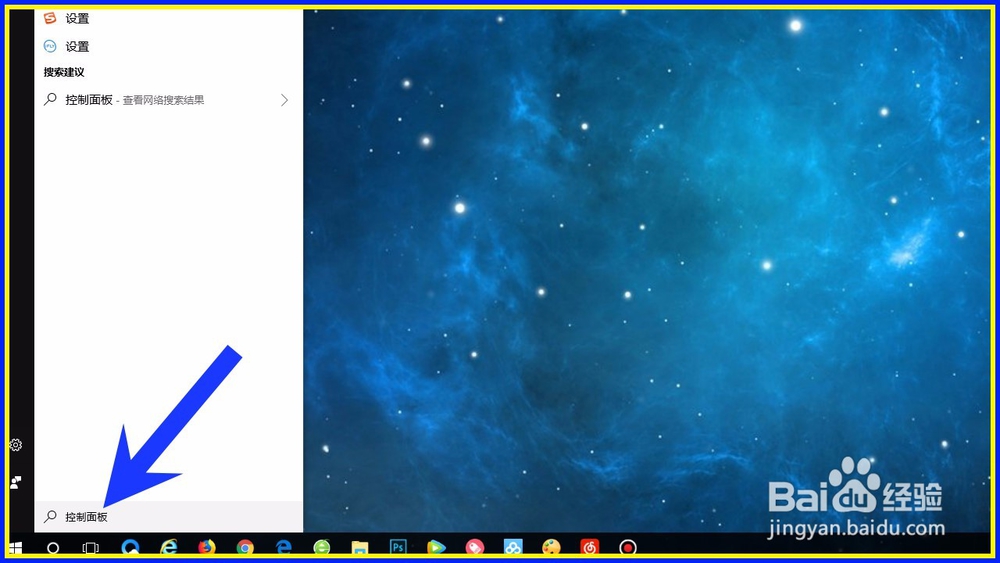 在搜索框中輸入控制面板,然后點(diǎn)擊回車鍵。下圖所示。