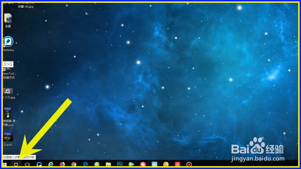 首先點(diǎn)擊windows10系統(tǒng)左下角的搜索圖標(biāo)。下圖所示。