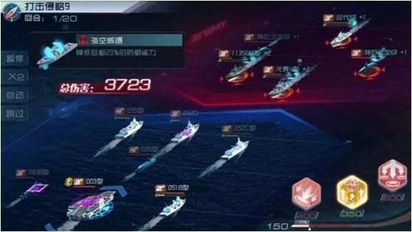 對(duì)同一目標(biāo)進(jìn)行多次打擊,單體秒殺,當(dāng)敵方目標(biāo)較少時(shí)有優(yōu)勢(shì)。能給敵方施加【??胀亍啃Ч蛊浞烙ο陆?。給己方施加【士氣如虹】增益,提升攻擊力。主要由中國戰(zhàn)艦組合的戰(zhàn)術(shù)艦隊(duì)搭配。