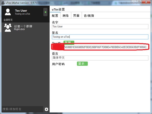 毒素對任何人都很容易使用。不需要注冊,只要打開它,開始添加朋友,或者給你的朋友你的Tox ID,這樣他們就可以添加你。您可以在設(shè)置選項卡中找到您的Tox ID。