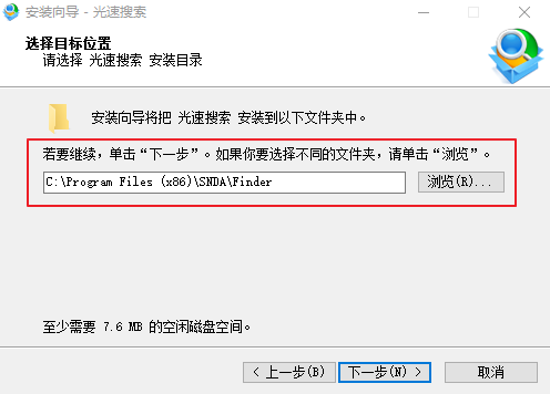 1.雙擊打開光速搜索PC版軟件,點擊下一步