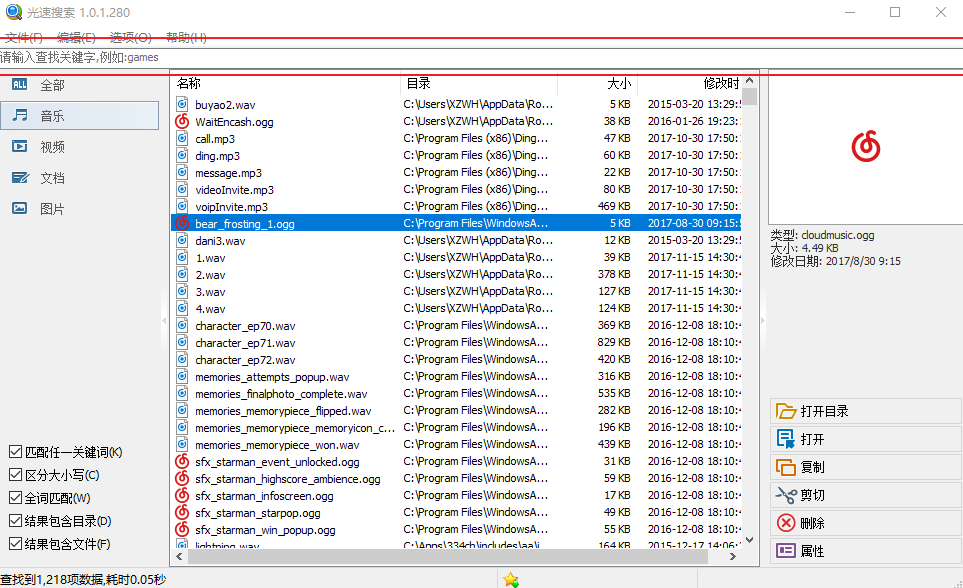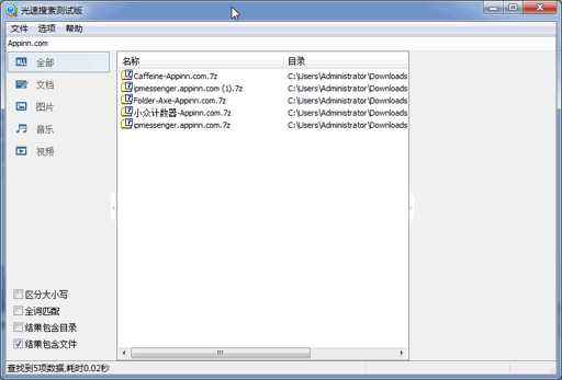光速搜索有多快筆者親測,加載全部文件僅需0.02秒,查找任意文件亦是毫秒級的速度,從此告別windows自帶搜索工具漫長無期的等待。