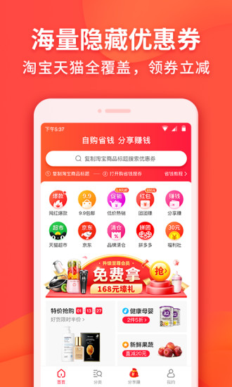 【全】包含全部優(yōu)惠券,找商品一鍵查詢,有券的商品這里都能搜索到。【省】大額優(yōu)惠券,每日更新大額優(yōu)惠券,領券購物更省錢!全部開放領取,簡單方便直接抵現金。
