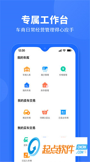 網(wǎng)上車市與當?shù)剀囀袑?,購車更便捷?br />專屬工作臺,車商日常經(jīng)營管理得心應手;2個收車渠道:線上收車、發(fā)布求購;