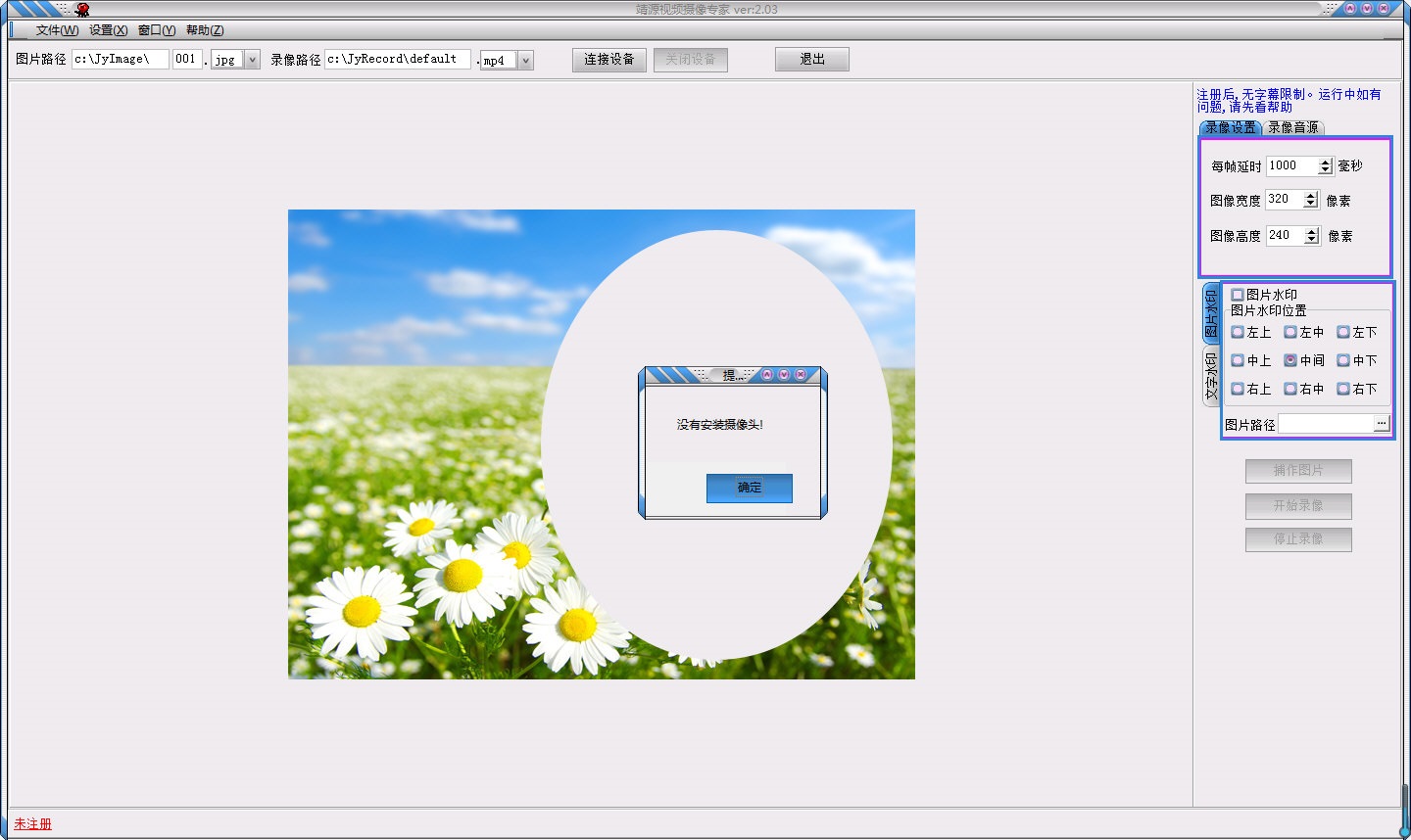 靖源視頻攝像專(zhuān)家是一款免費(fèi)綠色的視頻攝像軟件。靖源視頻攝像專(zhuān)家可對(duì)攝像頭捕捉到的視頻進(jìn)行錄像、捕捉單幅圖片,還可一鍵錄制正在播放的聲音和麥克風(fēng)。