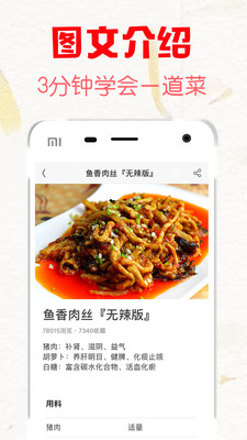3. 清晰的菜譜步驟,描述詳細、高清圖片、動圖展示,讓您覺得做菜本來就是一件輕松容易的事情!