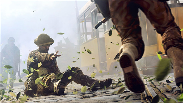 3、然后可以注意到有位士兵(類(lèi)似奎爺?shù)哪俏?跳下坦克后,踉蹌倒地,這也是新作中的新引進(jìn)的一種動(dòng)作機(jī)制,就是玩家角色在不平整地面上跑動(dòng)時(shí),可能會(huì)出現(xiàn)以第三人稱(chēng)的視角呈現(xiàn)的踉蹌或是被困住。