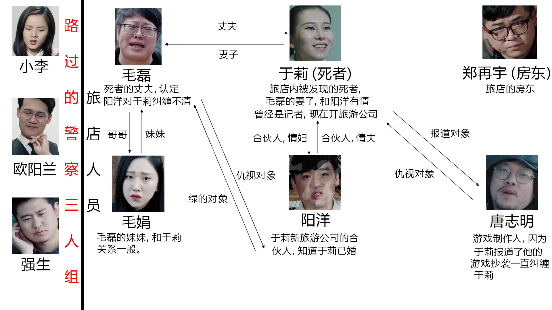 1.主角三人組在到了旅店住宿后,第二天早上就發(fā)生了案件,一位大媽被殺。通過調(diào)查后得知,大媽名叫于莉。于莉和毛磊是夫妻關(guān)系,毛磊有個妹妹叫毛娟,然后于莉和另外一個叫陽洋的人組建了一個旅游公司,這次酒店登記,于莉和陽洋是一起來的,而毛磊和毛娟是一起來的。最后還有一個叫唐明志的游戲制作人。根據(jù)案發(fā)現(xiàn)場環(huán)境調(diào)查發(fā)現(xiàn)兇器是一款男士圍巾,而照片顯示毛磊也帶著這個圍巾,將證物的“兇器:男士圍巾”和證物的“手機(jī)照片”拖進(jìn)組合欄進(jìn)入劇情。