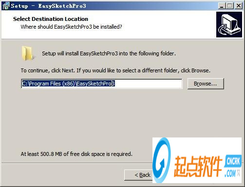 2、選擇安裝位置,默認(rèn)為“C:\Program Files (x86)\EasySketchPro3”,可以點(diǎn)browse修改