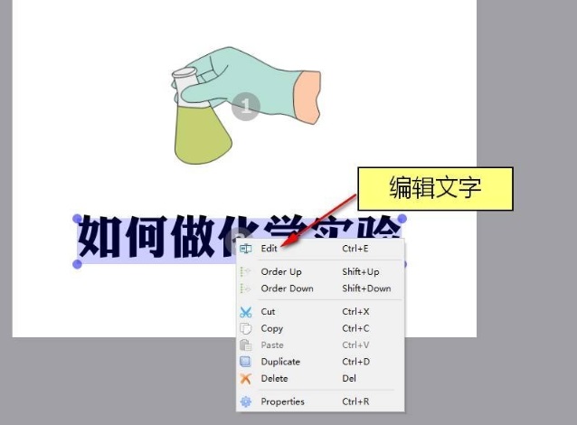 如果想修改文字的話,需要雙擊文字,然后點(diǎn)擊鼠標(biāo)右鍵,選擇“Edit(編輯)”按鈕即可。